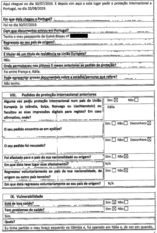 I. O A. não foi notificado da informação mencionada no ponto anterior, nomeadamente, para se pronunciar sobre a provável inadmissibilidade do seu pedido e a possibilidade de ser transferido para Itália, cfr. processo virtual;