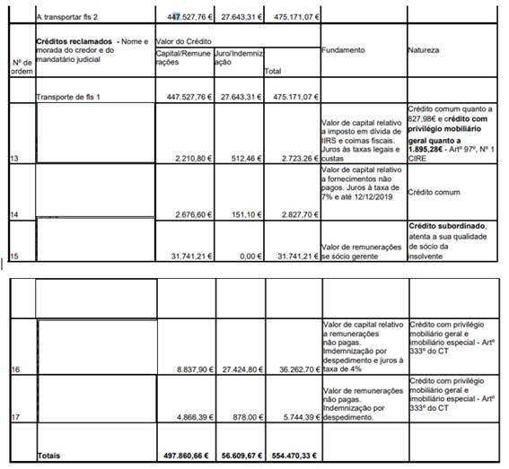 Cumpre determinar a perda de 31.741,21€ reclamados, a título de salários pelo gerente DD e 341.400,00€ de suprimentos reclamados pelo requerido CC– artigo 189.º, n.º 2, alínea d) do mesmo diploma”.