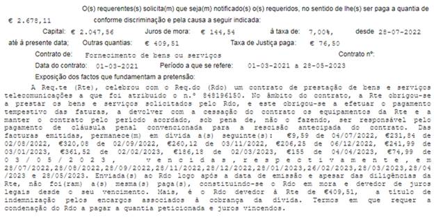 Assim, relativamente ao pedido de pagamento do montante correspondente à cláusula penal convencionada para a rescisão antecipada do contrato e à indemnização pelos encargos associados à cobrança da dívida, foi lançado mão de uma forma processual que legalmente não é a prevista para tutela jurisdicional respetiva.
